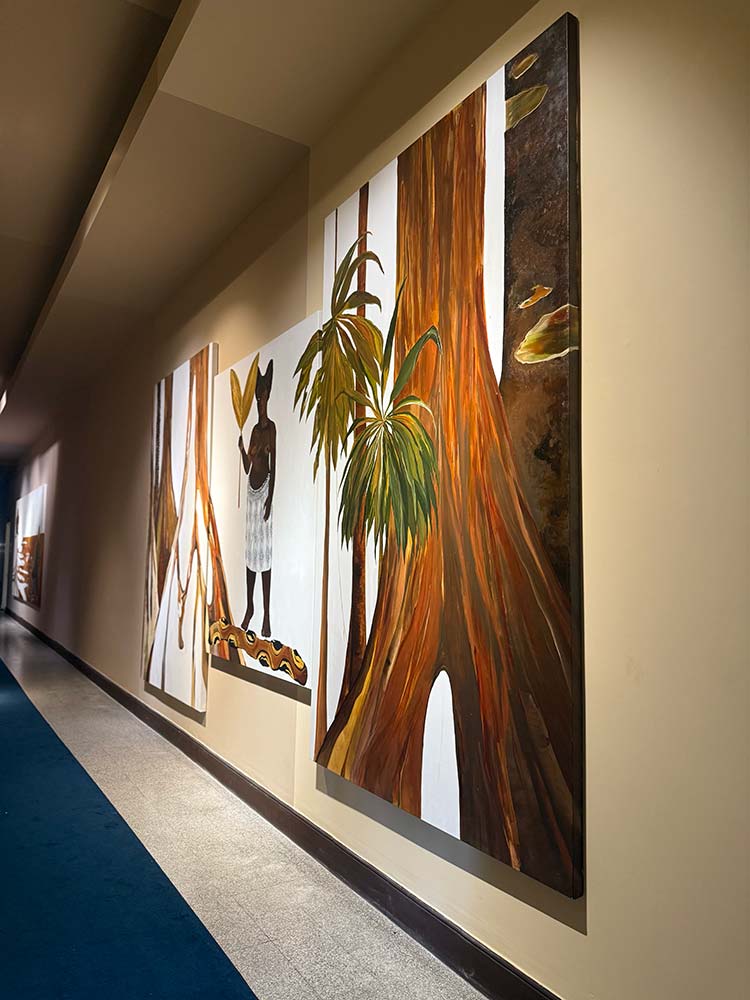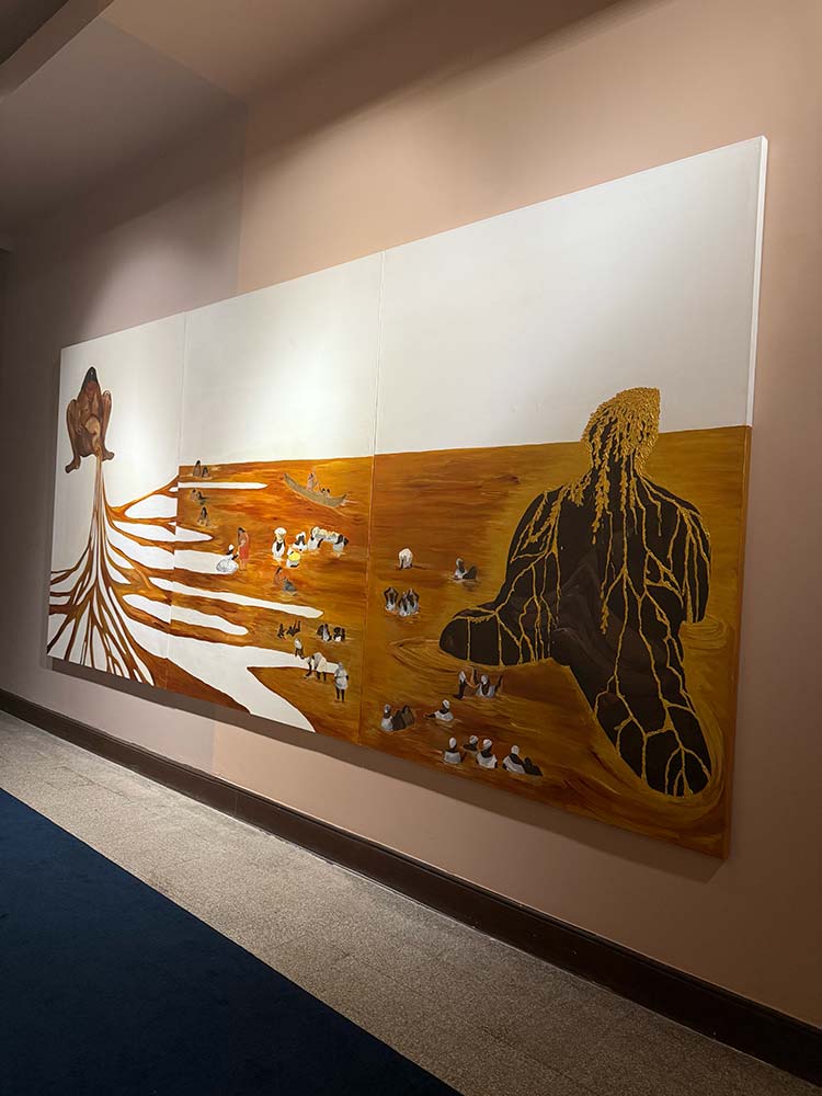 Já a Mitre Galeria fez uma seleção de obras de grande escala, todas acima de 1,90m, de artistas que integram de forma singular as potências da arte contemporânea brasileira: Éder Oliveira, Hariel Revignet, Marcel Diogo e Rafael RG.